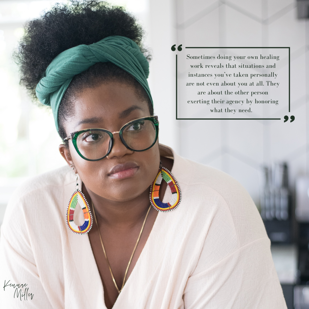 When I sat and explored why I felt hurt it was because I was convinced that because I enjoyed being in space with them or the way I perceived them to be, they would feel the same towards me. I mean have you ever bumped into someone you’ve been following on social media in real life, only to have an interaction that made you feel like everything they said and shared on social was a fake persona? This felt like I had been bamboozled but I also had to address why I felt I needed to be seen, witnessed or accepted by this person. Not in a shady or arrogant manner or even a deflection by labeling them a hater, but they are human. They are showing up in the world the exact way they want or need to and who am I to ask anyone to be other than who they are? Looks like I need to manage my expectations and realize that sometimes doing your own healing work reveals that situations and instances we’ve taken personally are not even about you at all. They are about the person exercising their agency by honoring what they need. The tool this friends class gave me was the phrase, “Thank you for honoring what you need.”